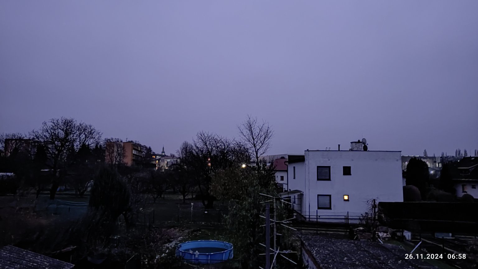 5,9°C, Skoro jasno až jasno, Sníh: 0 cm. Podle teploměru je venku teplo, ale pocitově je celkem chladno.