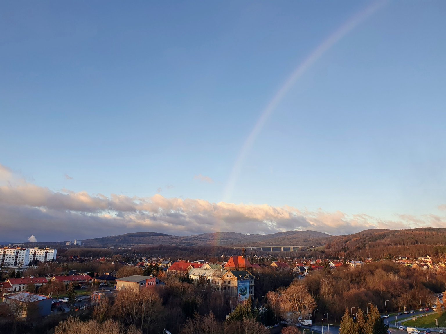 celá duha, na horách přeháňky, Z vítr v nárazech do 50km/h