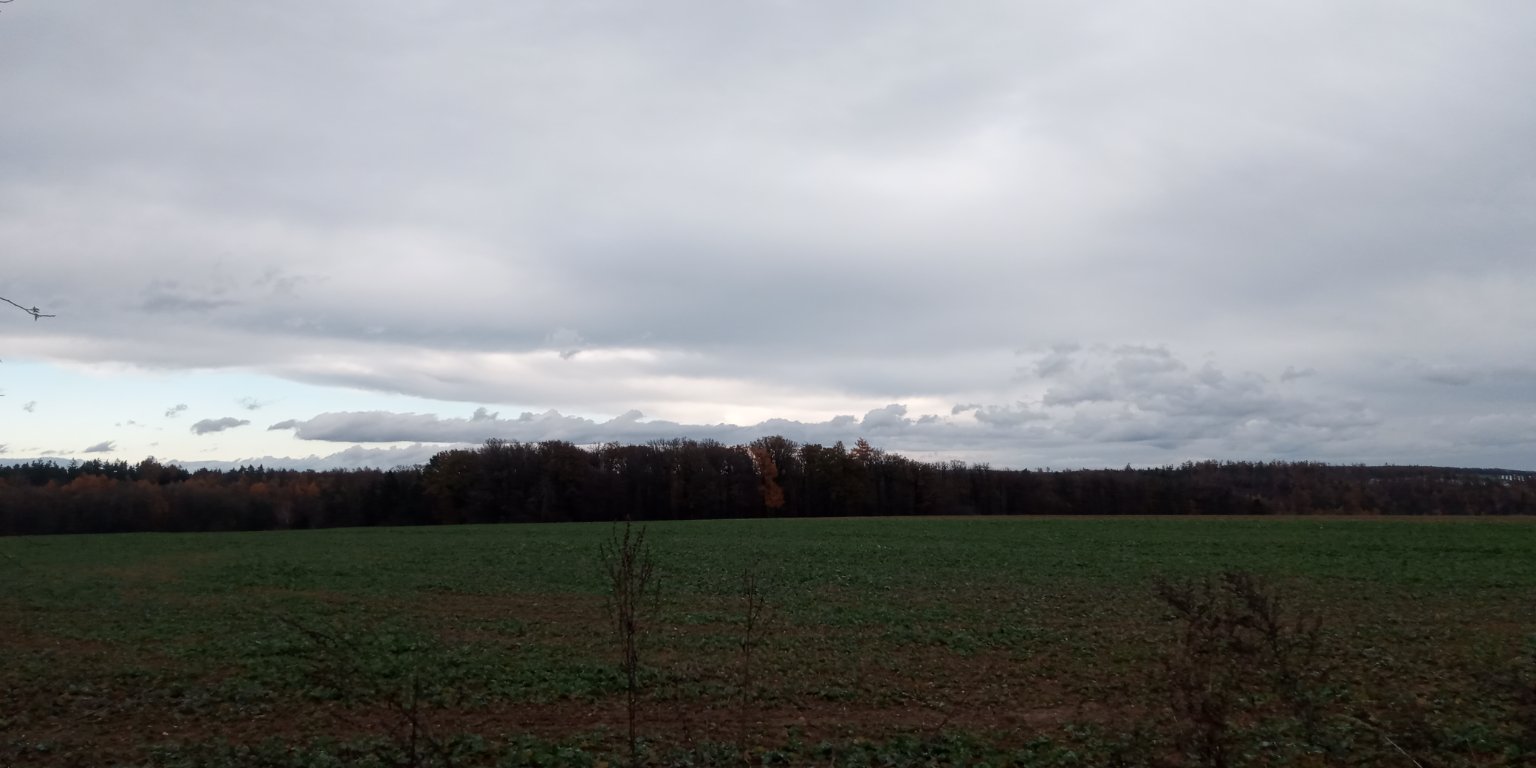 Od severu se ale začíná velmi rychle zatahovat, vítr SZ, 5 km/h, tlak 1015 hPa.