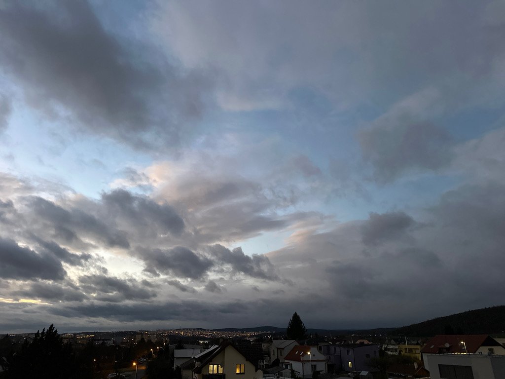 Oblačno až skoro zataženo, občas velmi slabě poprchává. Vítr 3 m/s proměnlivý. Vlhkost 87%. Srážky neměřitelné
