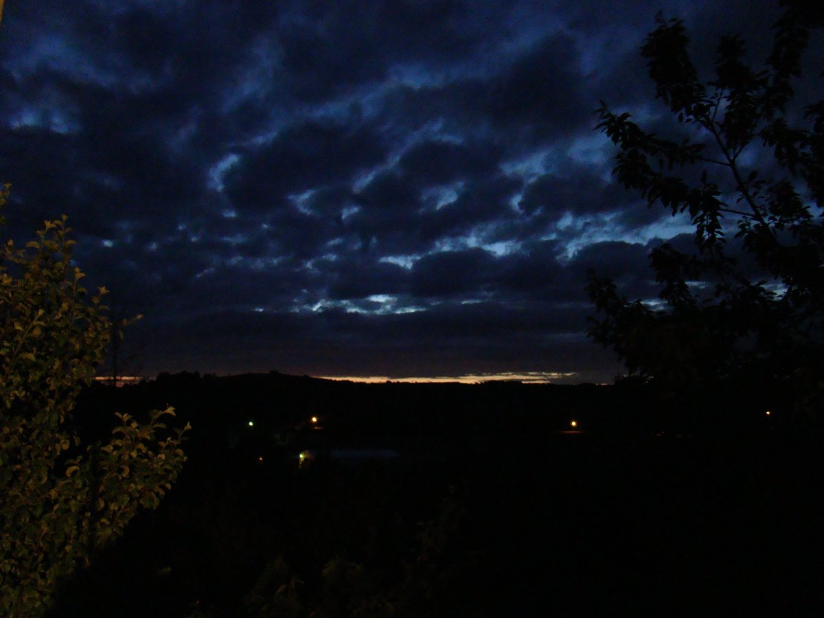 K večeru ubývání oblačnosti, což přineslo pěkný západ slunce, vlhkost 72%, slabý vítr. Foto cca 21:00 SELČ.