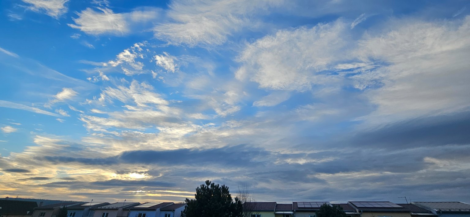 -°C, Skoro jasno, Sníh: 0 cm. Slunko už zapadá...