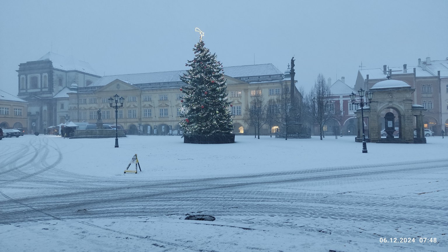 Zataženo snežení mokrým sněhem, klidno, mokrý povrch, tlak 1007 hPa. Místy poprašek sněhu.