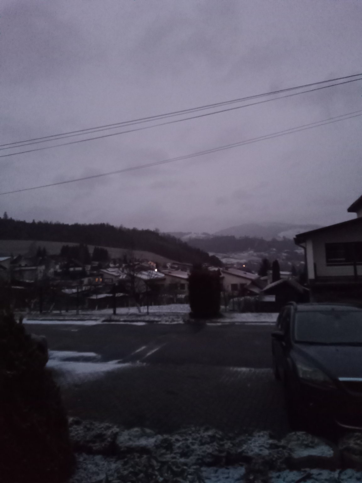 Oblačno, deštivo a větrno; dnes již 9 mm. Bez sněhu.