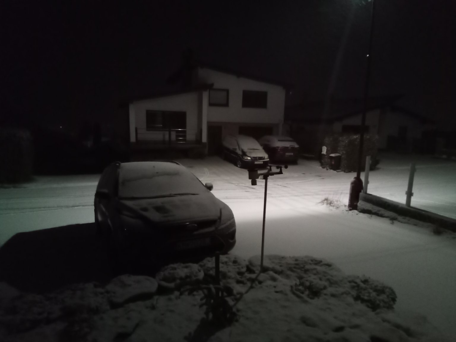 Celkem napadlo kolem 8-9 cm mokrého sněhu. Aktuálně mrholí, občas se sněhovými vločkami.