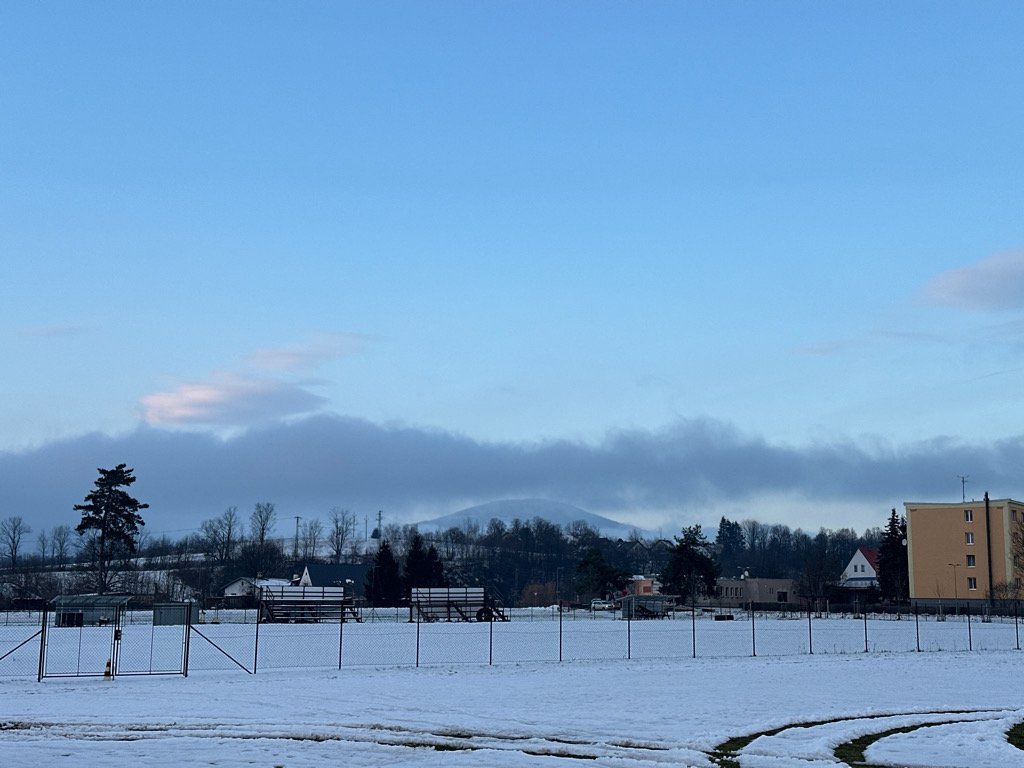 Zamračené, slabé sneženie