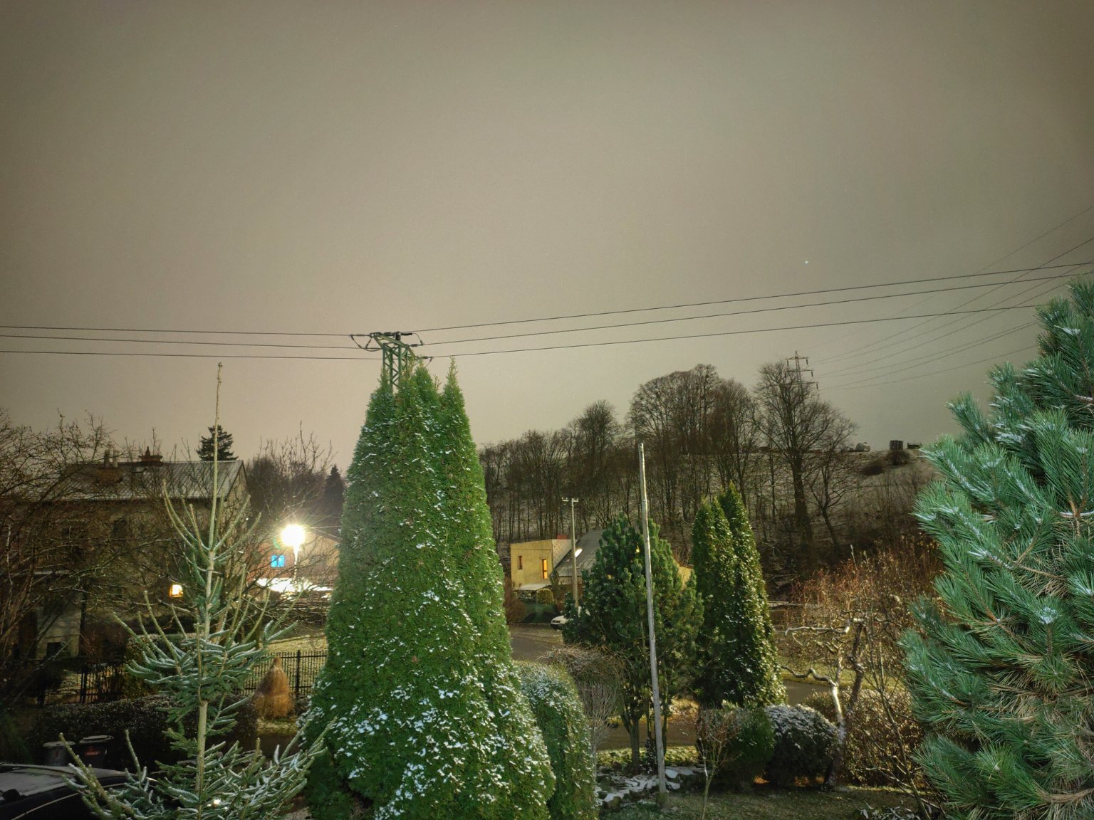-1,5°C, Zataženo, Sníh: poprašek. Zajimavé, vůbec nemělo sněžit a přitom v noci připadlo celkem dost. :-)