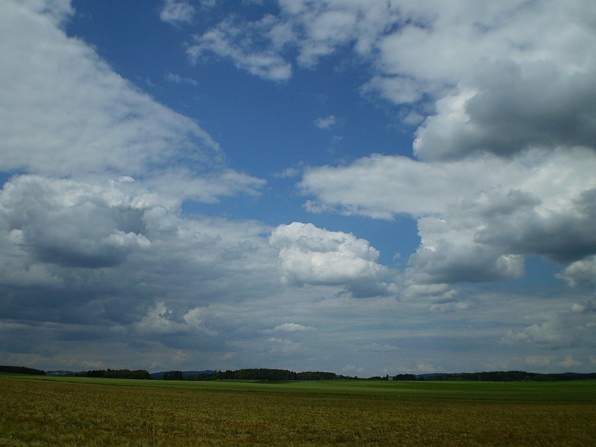 ráno v 7 hodin 10°, docela zima, nyní 23° a mraky se nám honí nad hlavou - teď jich je méně viz foto z 2014 06 16 v 13:38