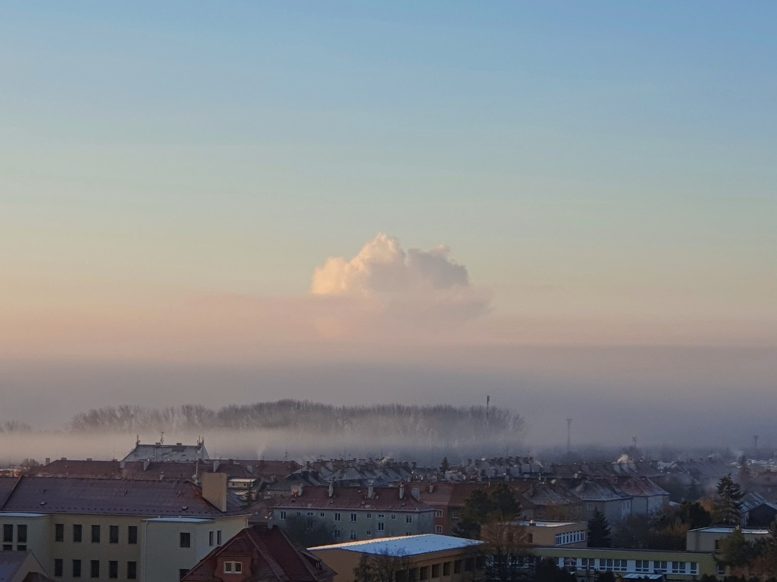 Mrznoucí mlha, dohlednost 100m. Bezvětří. Min T dnes -4,1°C
