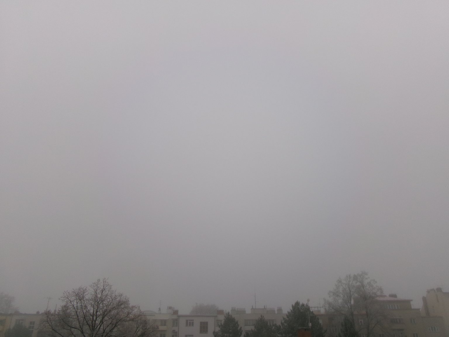 Sníh sedá a ubývá. Tlak 1023 hPa, vlhkost 61 %, je hezky.