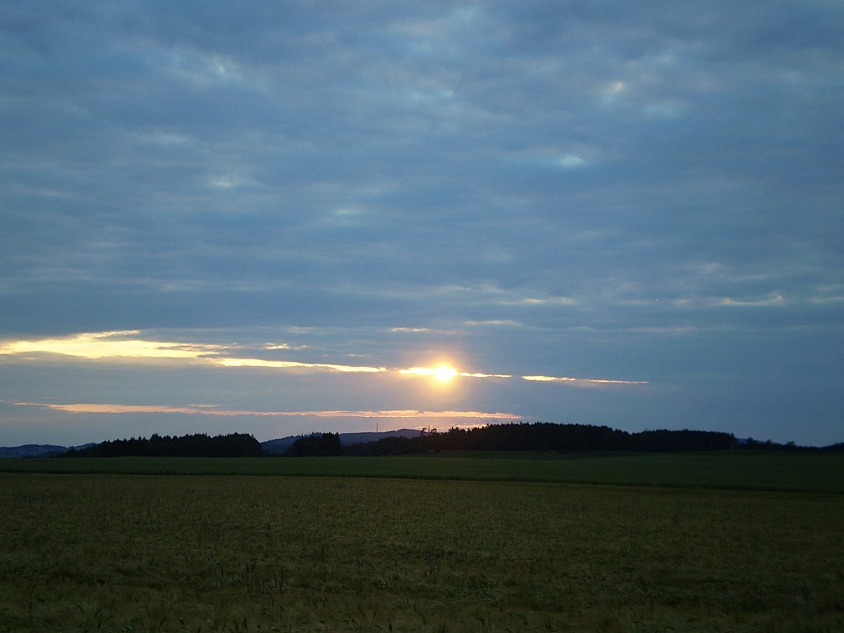 Hezké, altocumulus na obloze a k tomu krásné pole