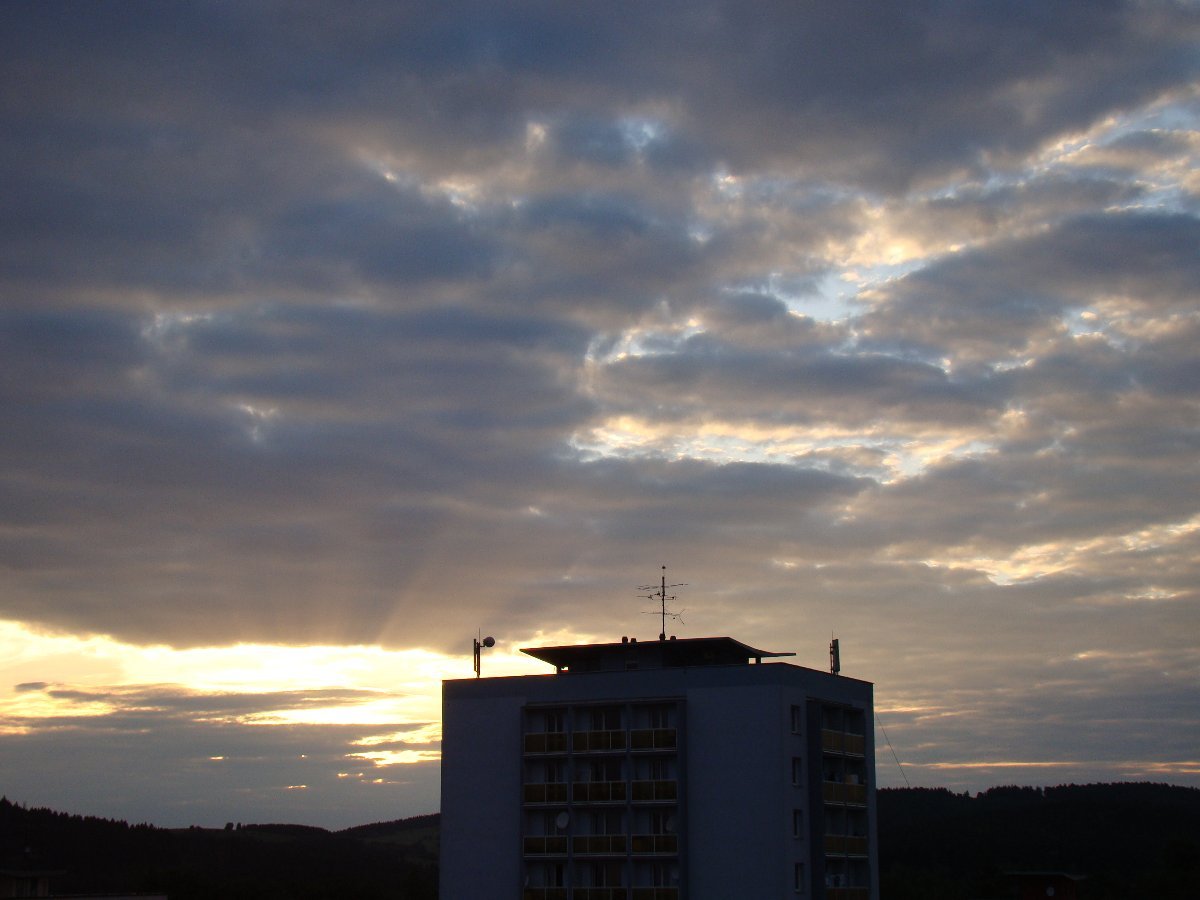 Klidno,tlak 1015hPa,vlhkost 48%,Slunce zapadá