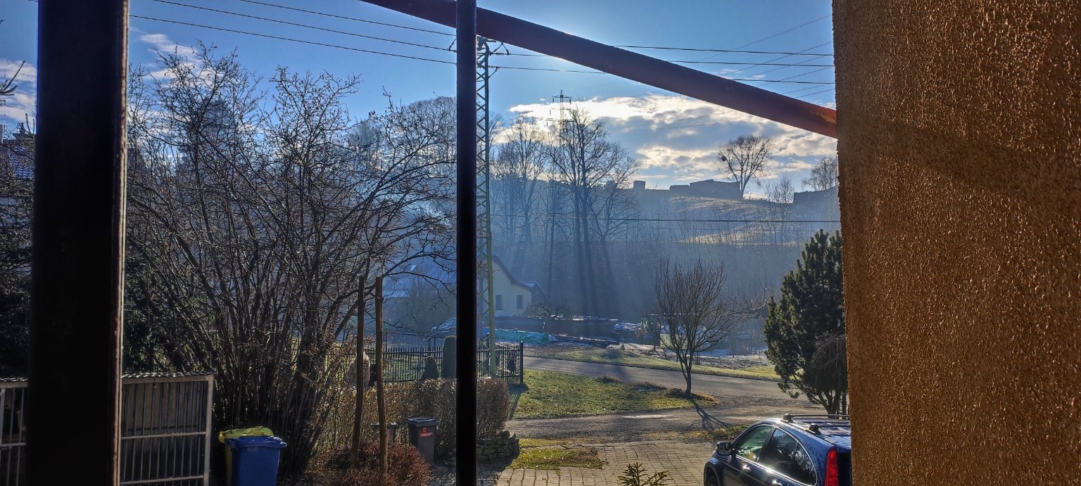 2,4°C, Skoro jasno, Sníh: 0 cm. Je nadherně, vůbec není znát že je nějaky smog, akorát v dálce slabý je.