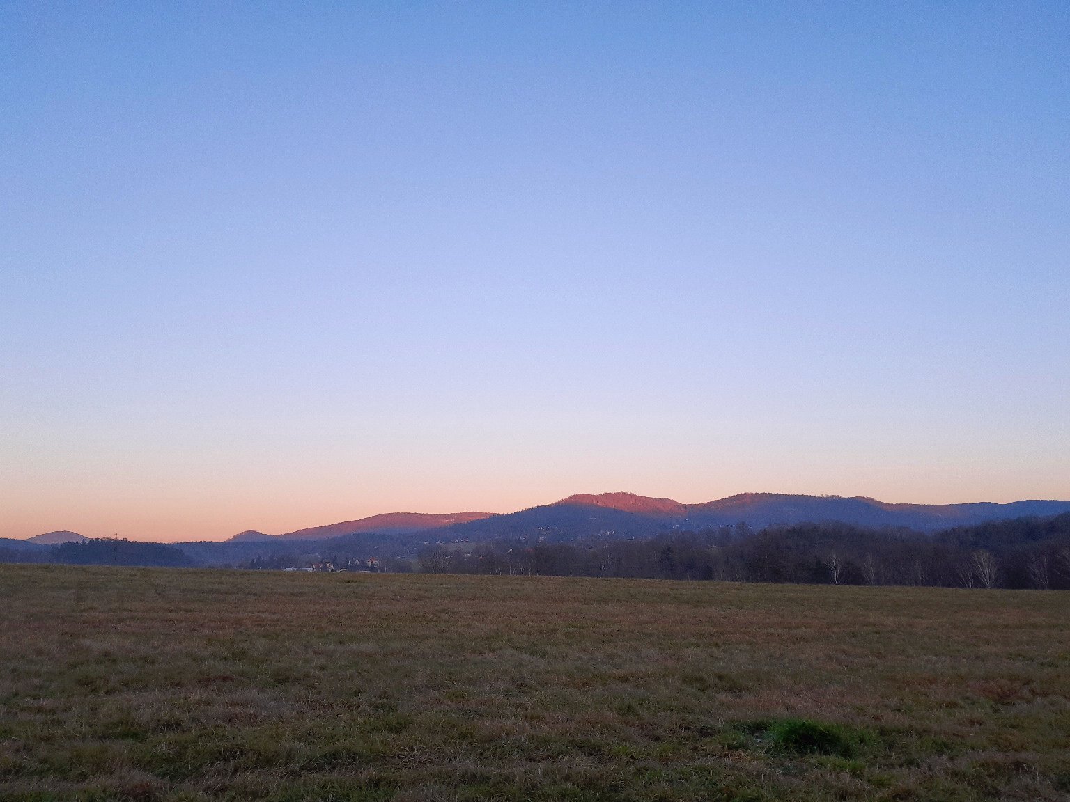 Jasno, daleká dohlednost, vrcholky Českého středohoří