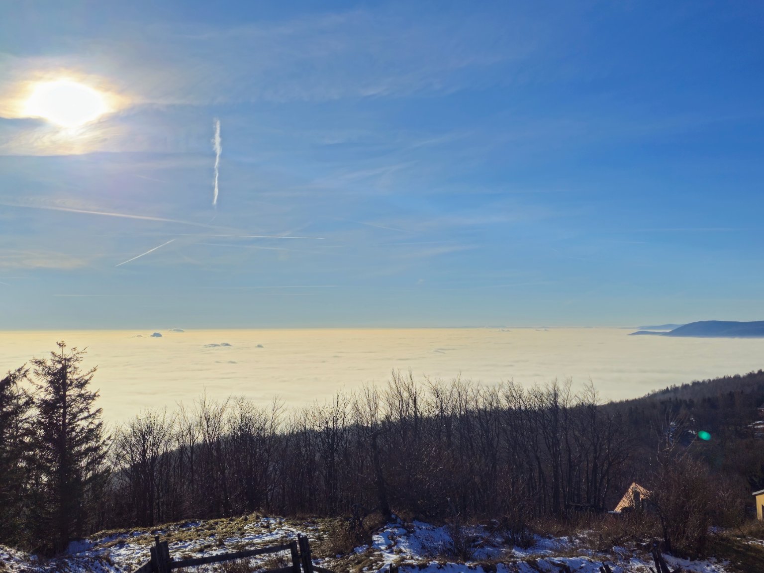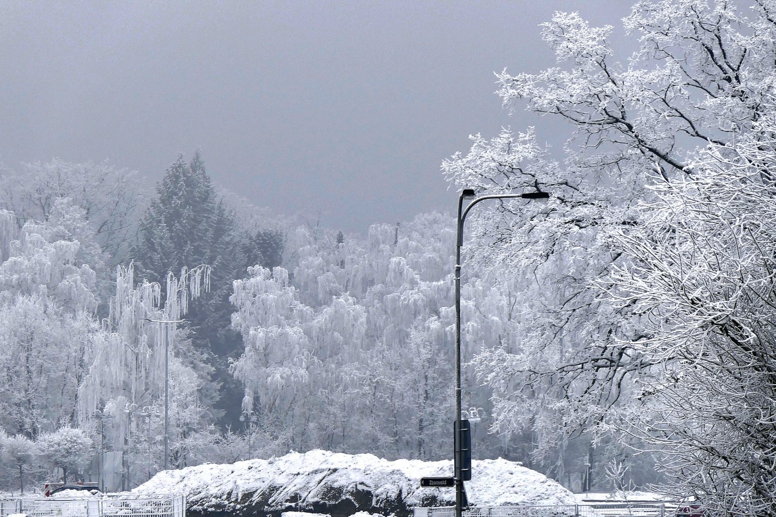 Otepluje se, lehký opar, jinak skoro slunečno. Ráno ještě všechno krásně bílé, teď už to roztálo 😟