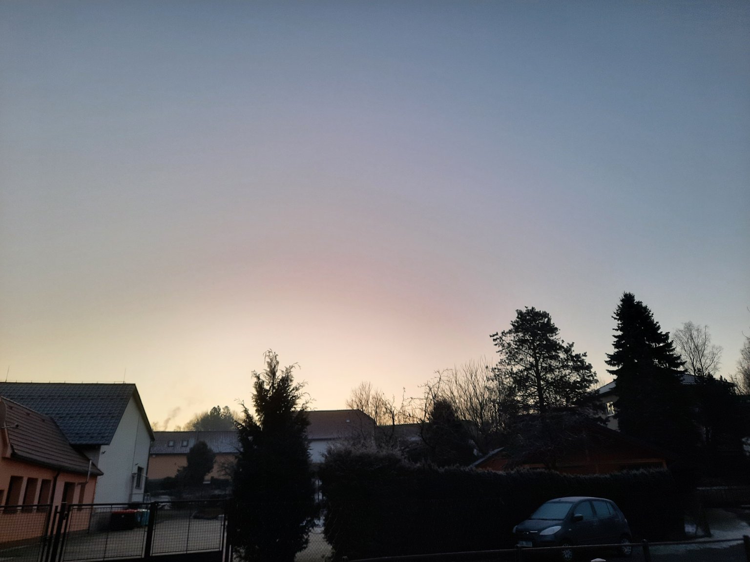 Sníh to vyloženě není, ale je to spad zmrzlého mrholení a námrazy. Je opět mlhavo, zataženo inverzní oblačností, námraza a jíní. Klidno nebo jen velmi slabý vítr. Tlak 1030 hPa.