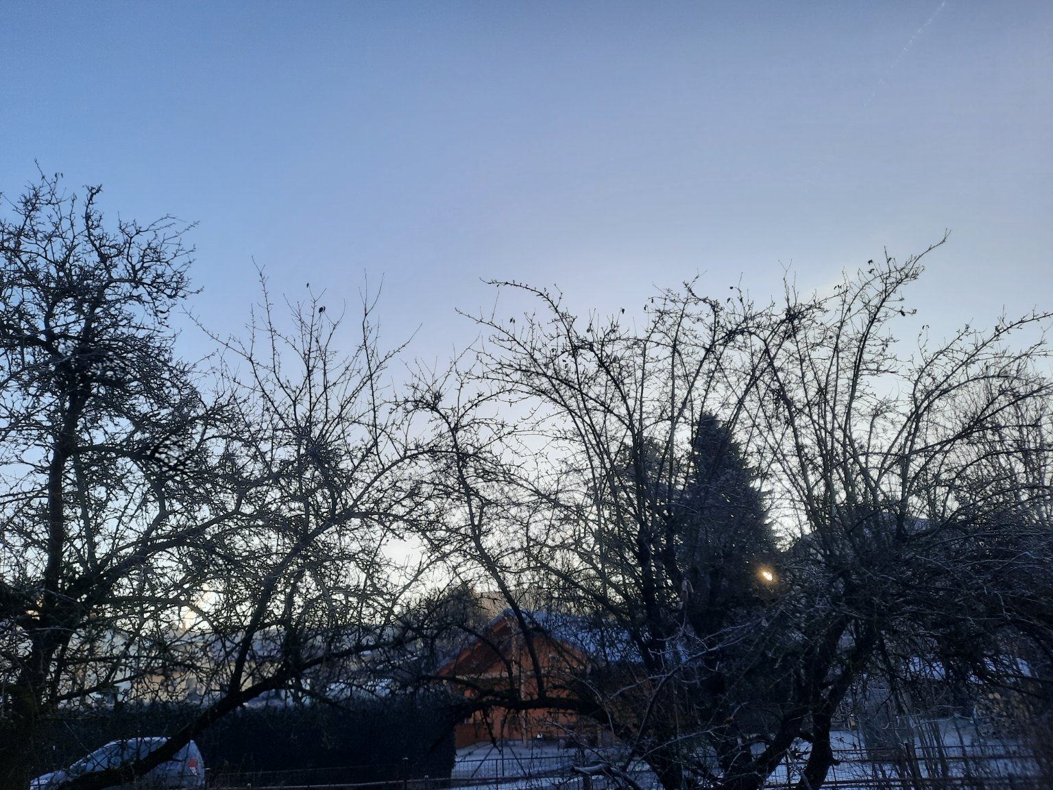 Dnes je krásné slunné počasí. Námraza jak v pohádce. Ale teplotu přesnou nevím. Jeden teploměr ukazuje -2, druhý -4 a třetí -6°c.