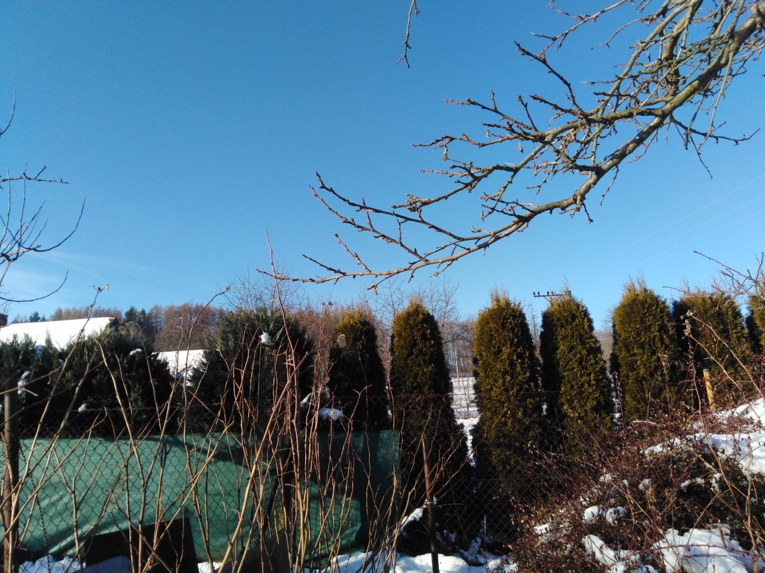 Opět viditelné Krkonoše a Ještěd. Hranice mlhy je dnes okolo 650-700 m.n.m. Sníh výrazně ubyl na jižní straně, už jen trochu nesouvislý. Ve stínu zatím drží