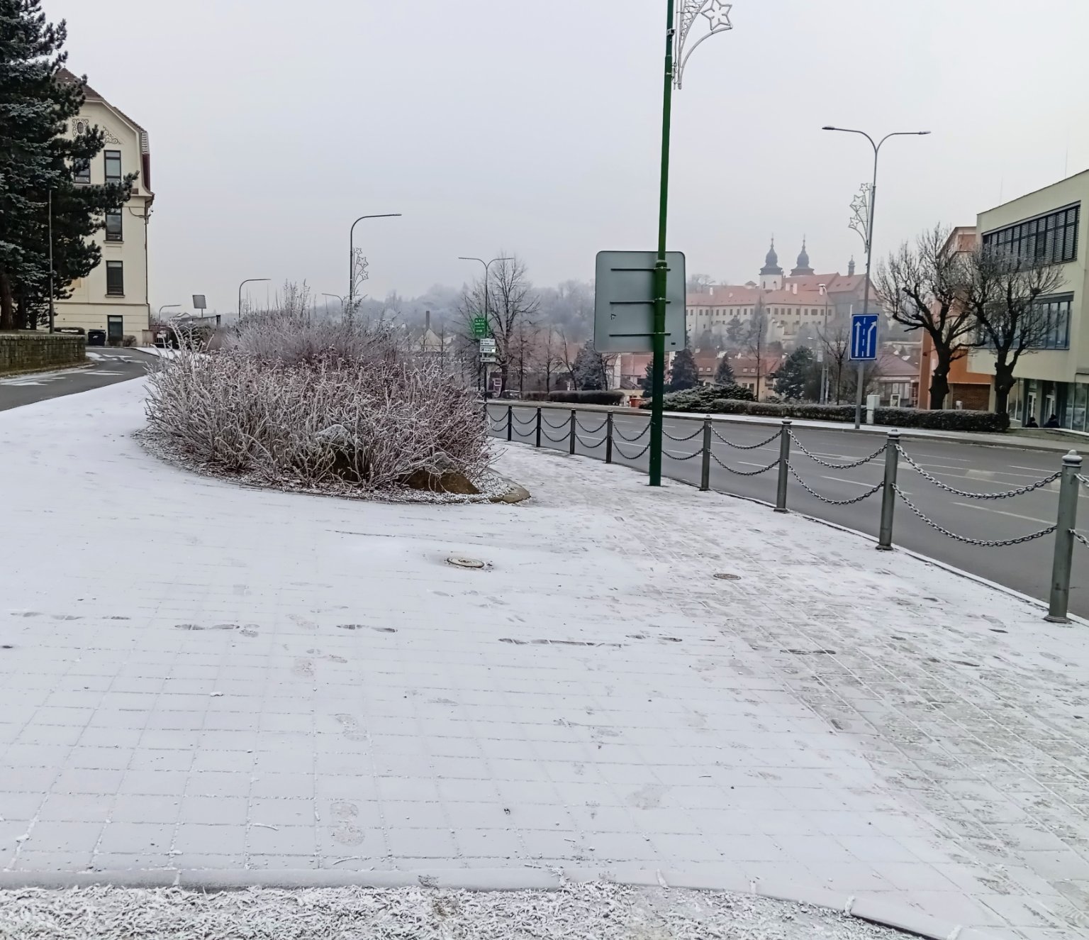 4,4°C, Skoro jasno, Sníh: 0 cm. Poslední západ slunce roku 2024 (prostě normální večer, nic výjimečného...)