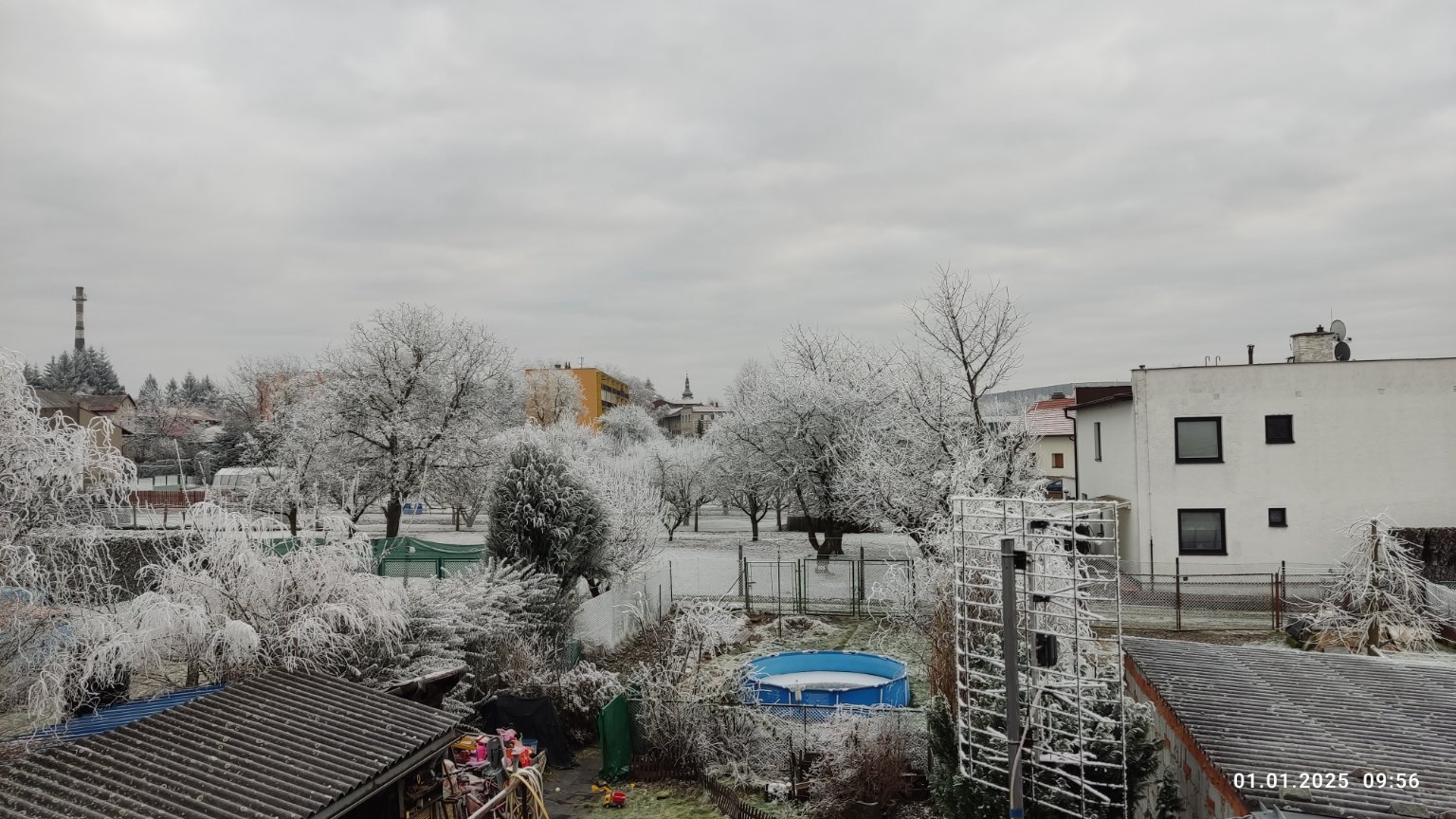 Mrznoucí mlha, tvorba námrazy, slabý až mírný JJV vítr.