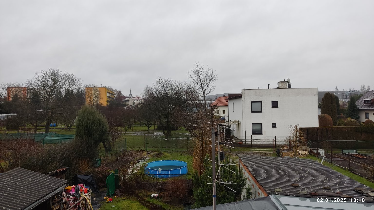Zataženo, slabě prší. Vítr 1 m/s SZ. Vlhkost 93%. Srážky zatím 0,3 mm