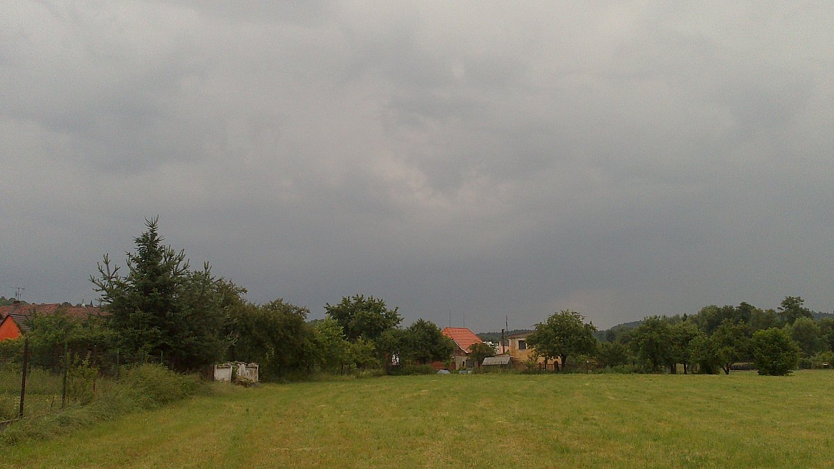 Klidno,tlak 1015hPa,vlhkost 34%.Nad Třebíčí a možná dál prší