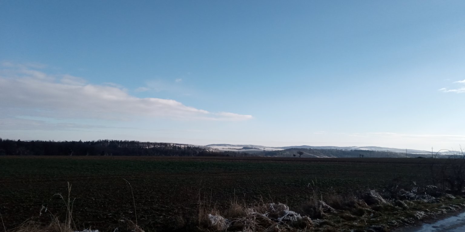 Většinou polojasno. Vítr okolo 2 m/s JZ. Vlhkost 77%