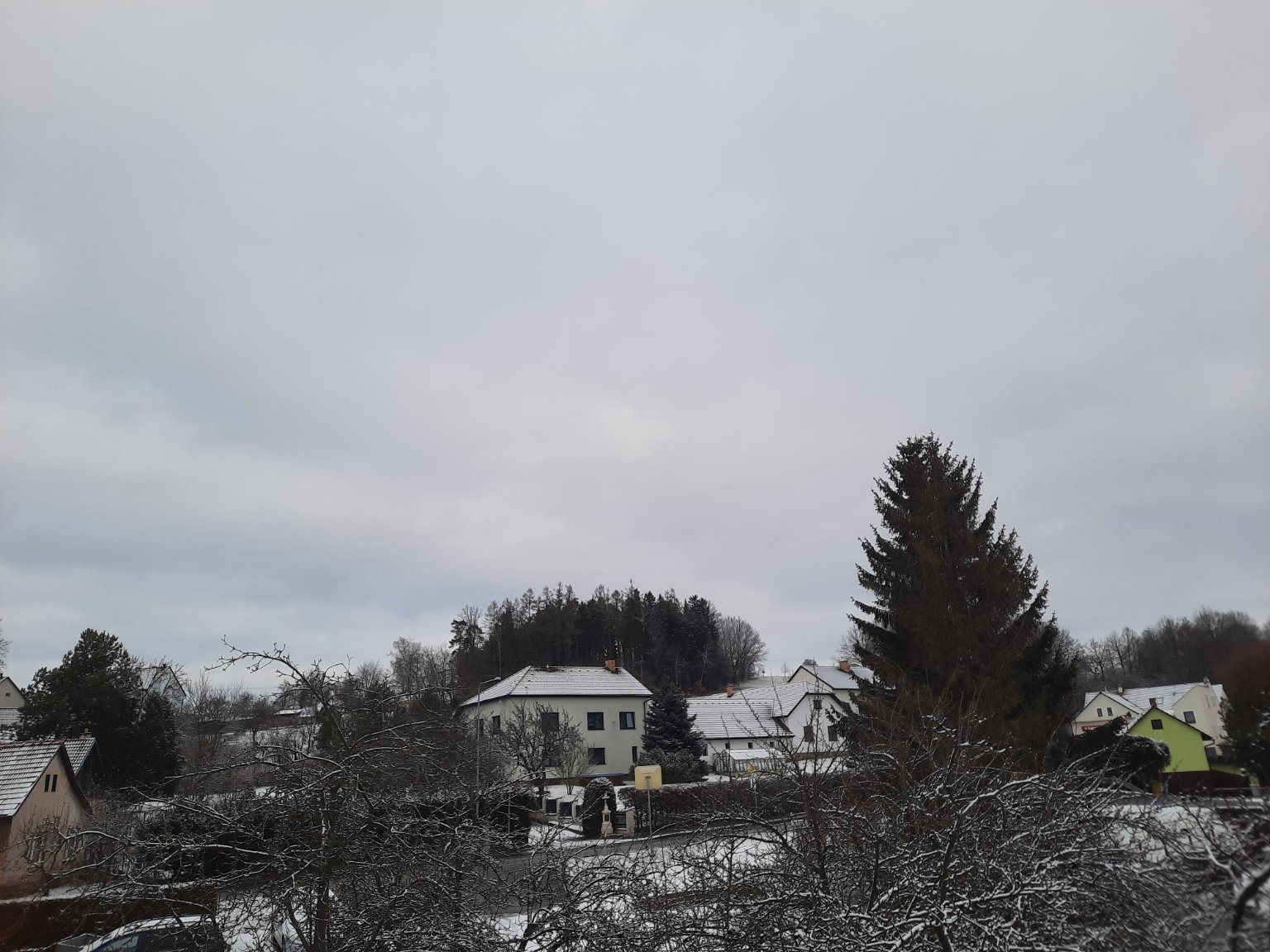 1°C, Oblačno, Sníh: 7 cm. Čekal jsem že bude víc bílo, ale to je tou vysokou trávou...