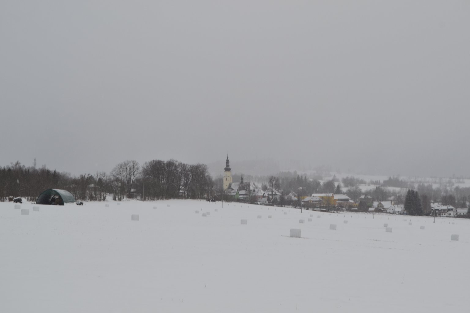 0,5°C, Velmi slabá až zanedbatelná sněhová přehaňka, Sníh: 6 cm. Pořádné přehaňky od Z ne a ne sem dojít, furt se to rozpadá u Ostravy... V dálce sice slabá je, ale nás jen lizla...