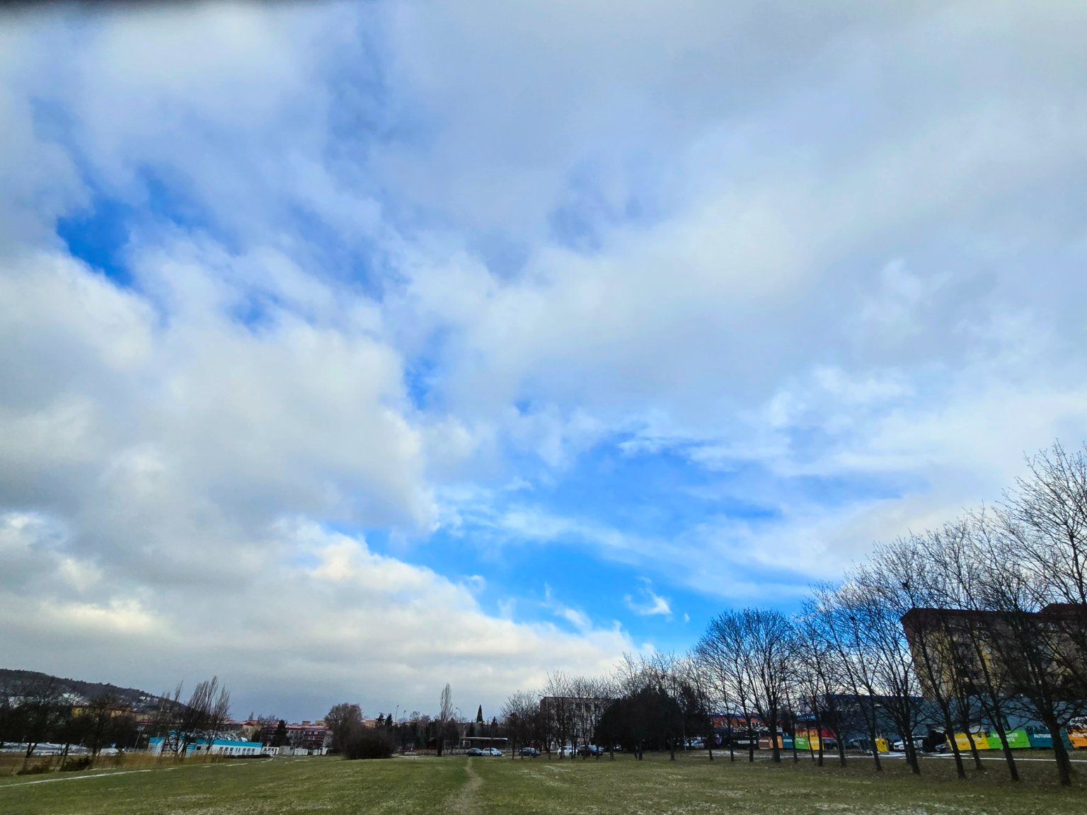 Zataženo, čerstvý západní vítr, tlak 1013 hPa.