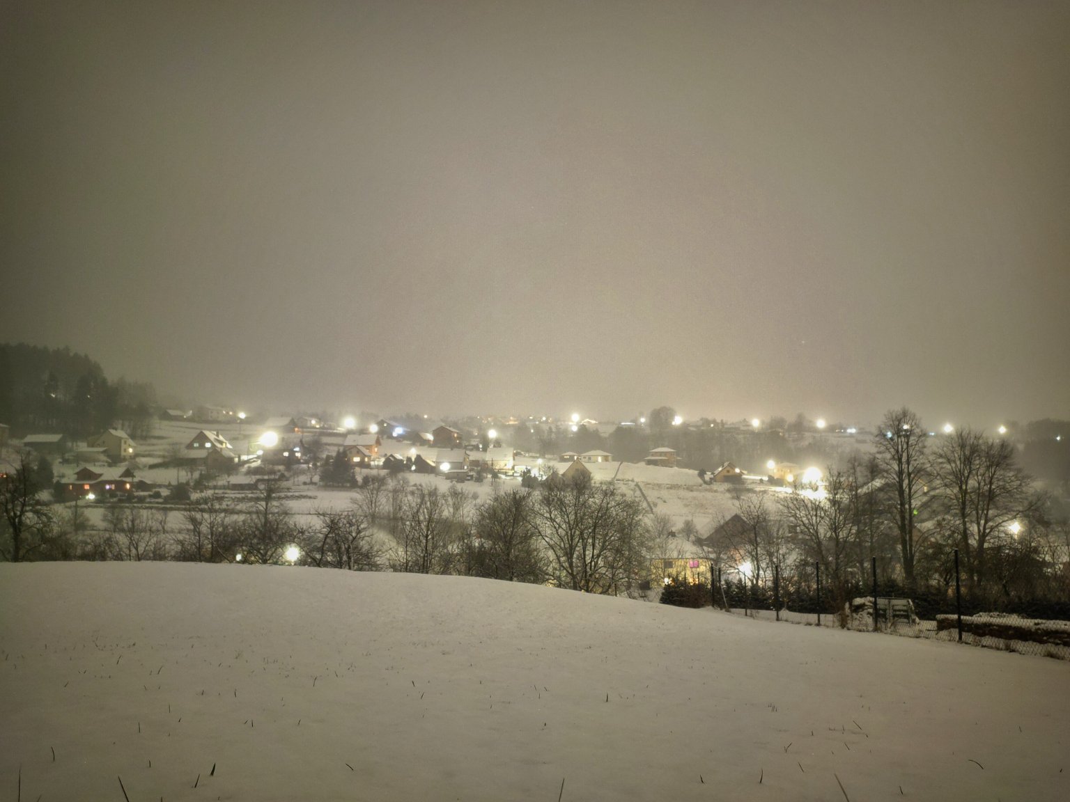 Silný vítr a sněžení houstne.Tvorí se závěje.