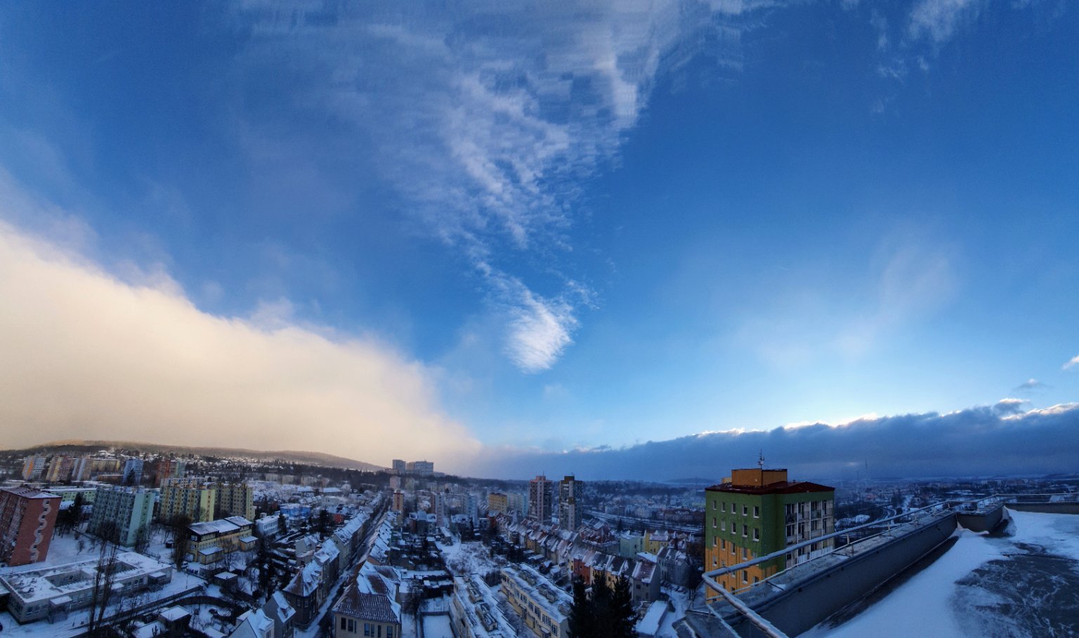 Většinou oblačno. Větrno, 3-7 m/s SV, s nárazy. Vlhkost 87%. Min T dnes -1,4°C