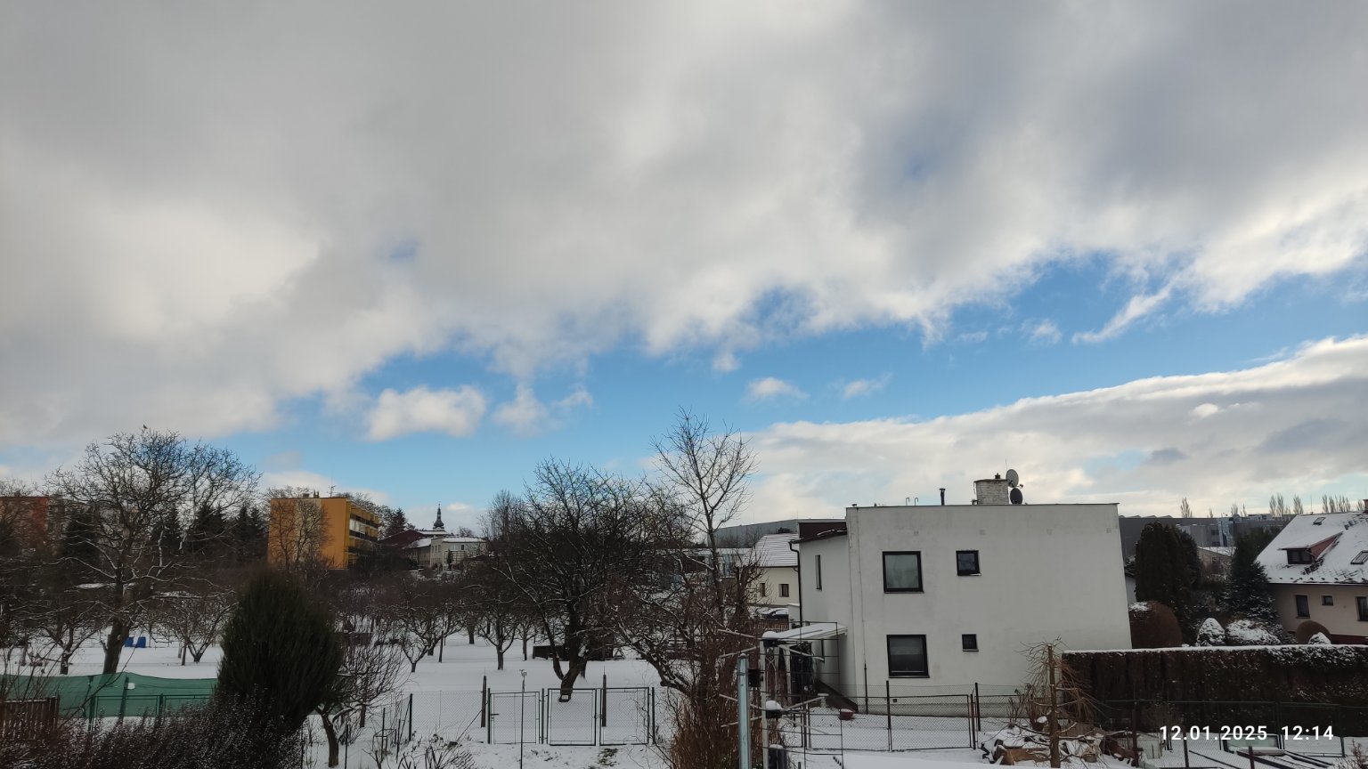 Zataženo a drobně sněží. Sněžení je však jen velmi slabé a tvorba sněhové pokrývky tak nehrozí. Vane čerstvý západní vítr, tlak: 1026hPa.
