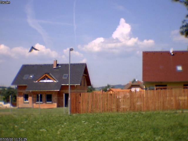 TEDka se to vybralo, je sk jasno, dneska byla docela slušná bouřka, s lijákem a silným větrem max náraz v bouřce byl 16,3m/s (58,6)km/h, byly i pěkné blesky, které mam na focené, většinou typu mrak zem a slušně bouřilo,na to že extofex hlásil jen 15% šanci u nás na bouřky a skywar zpočátku nic, tak se to docela fakt vydařilo, nevěřil jsem tomu, konečně se dneska bude lépe spát:-)) na fotce jsou mračna před polední bouřkou