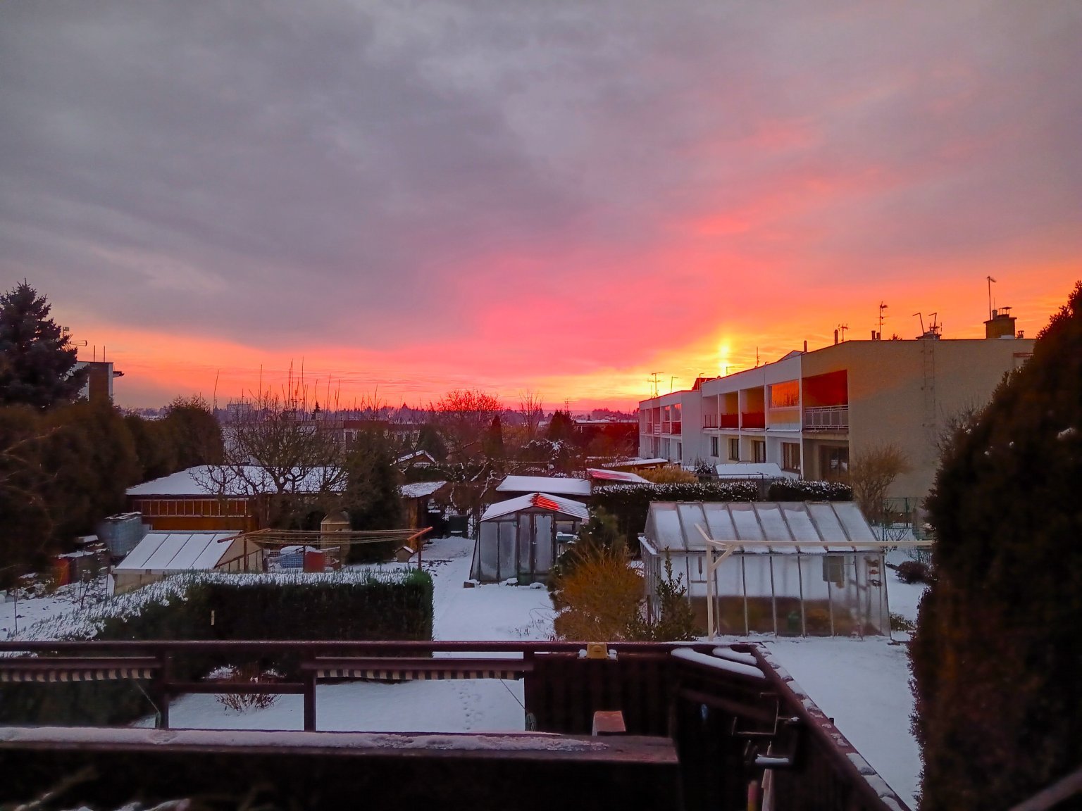 Převážně oblačno a bezvětří, mráz ( ledový den), opět červánky, sníh: 1,5 cm ❄️