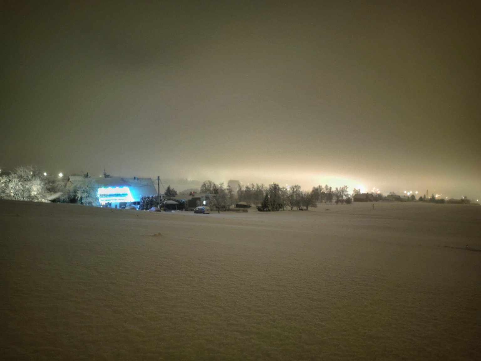 0,1°C, Velmi slabé sněženi, Sníh: 24 cm. Nádherná zimní noc!