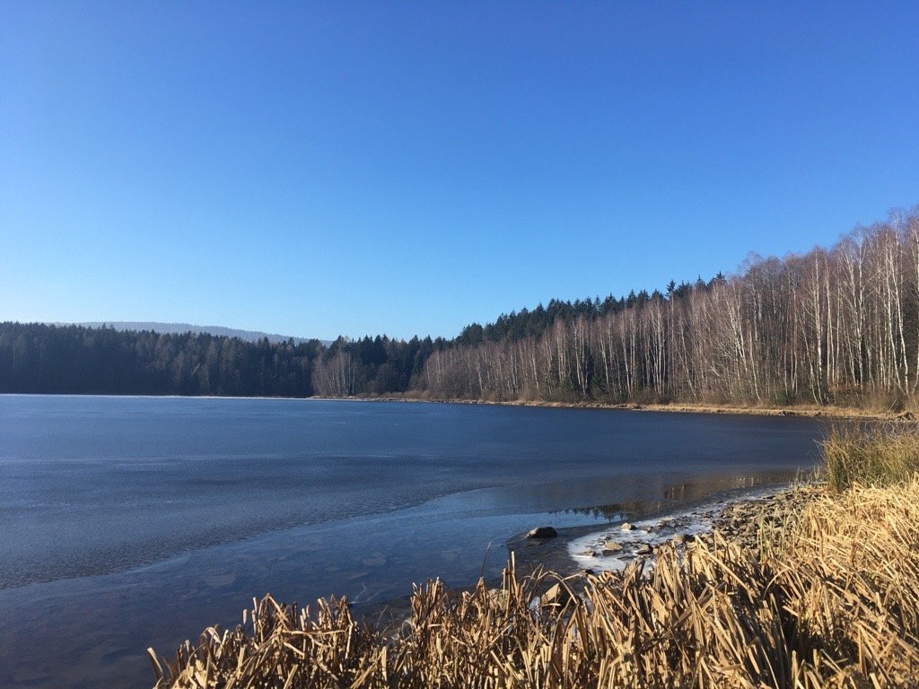 Jasno, o kousek níž už mlha a NO. Slabý vítr