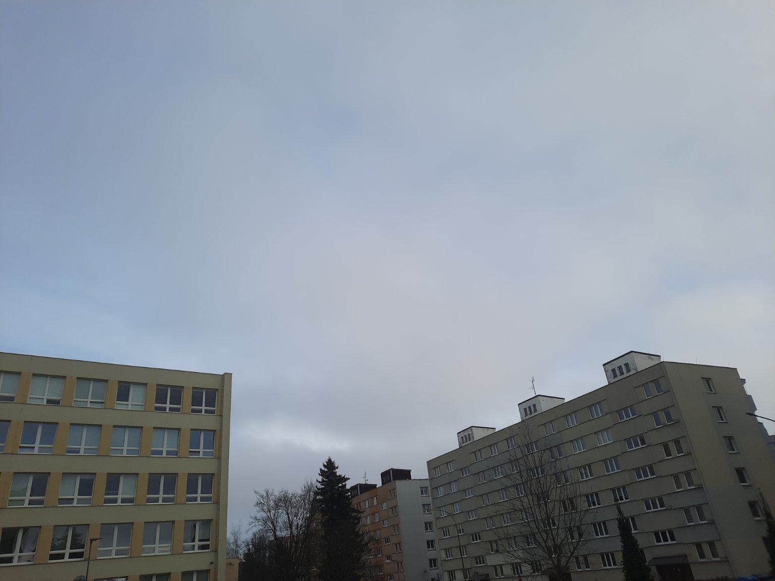 Skoro zataženo, oblačnost se místy protrhává. Většinou bezvětří
