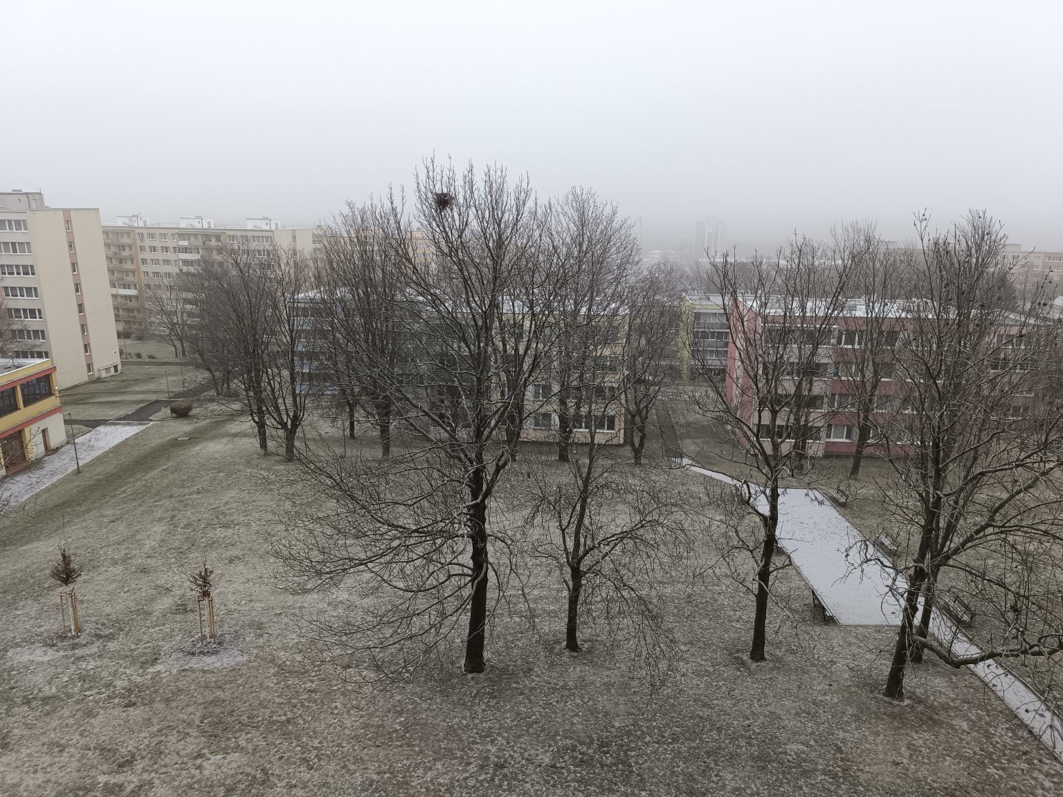 Oblohu nelze rozeznat celý den, mlhavo, bezvětří, ledovka