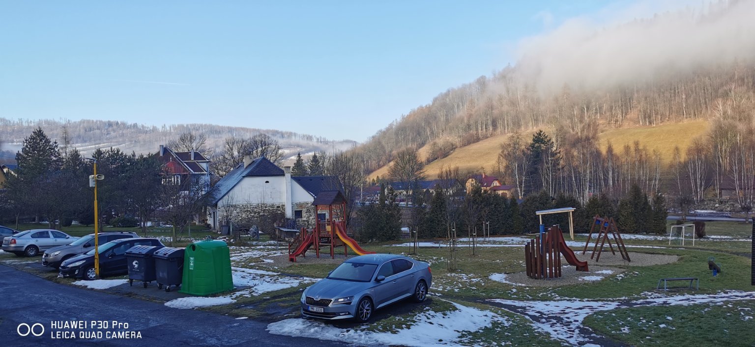 Aktuálně převažuje většinou zataženo, drobné sněhové mrholení a fouká většinou slabý občas až mírný vítr