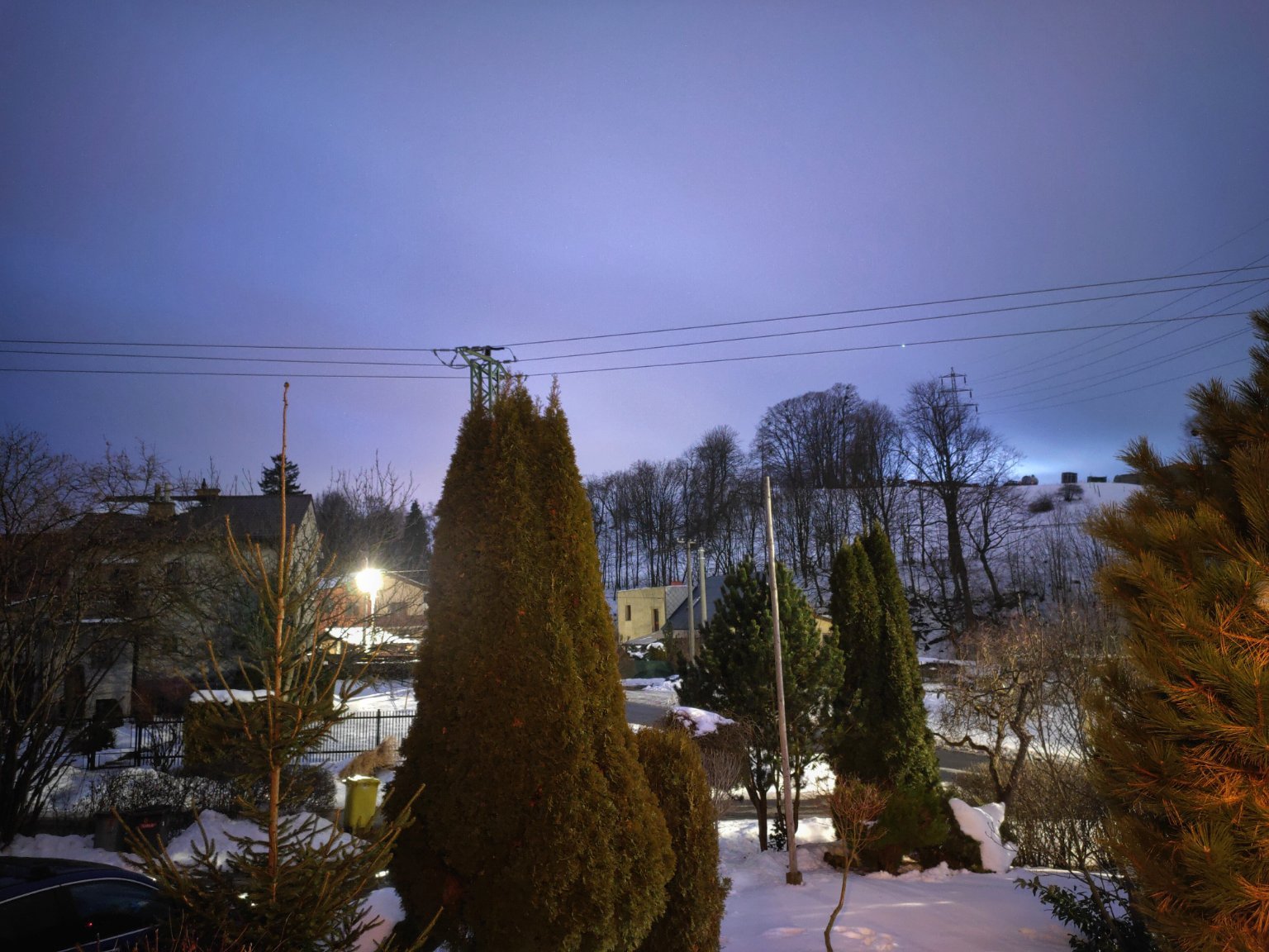 0,1°C, Zataženo, Sníh: 14 cm. Trochu se mi to přepalilo, ale nechce se mi to znova fotit...