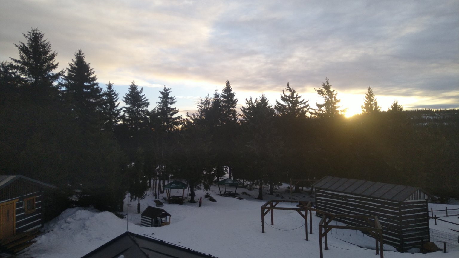 Oblačno až polojasno, slabý JV vítr, tlak 1005 hPa, vlhkost cca 90%.