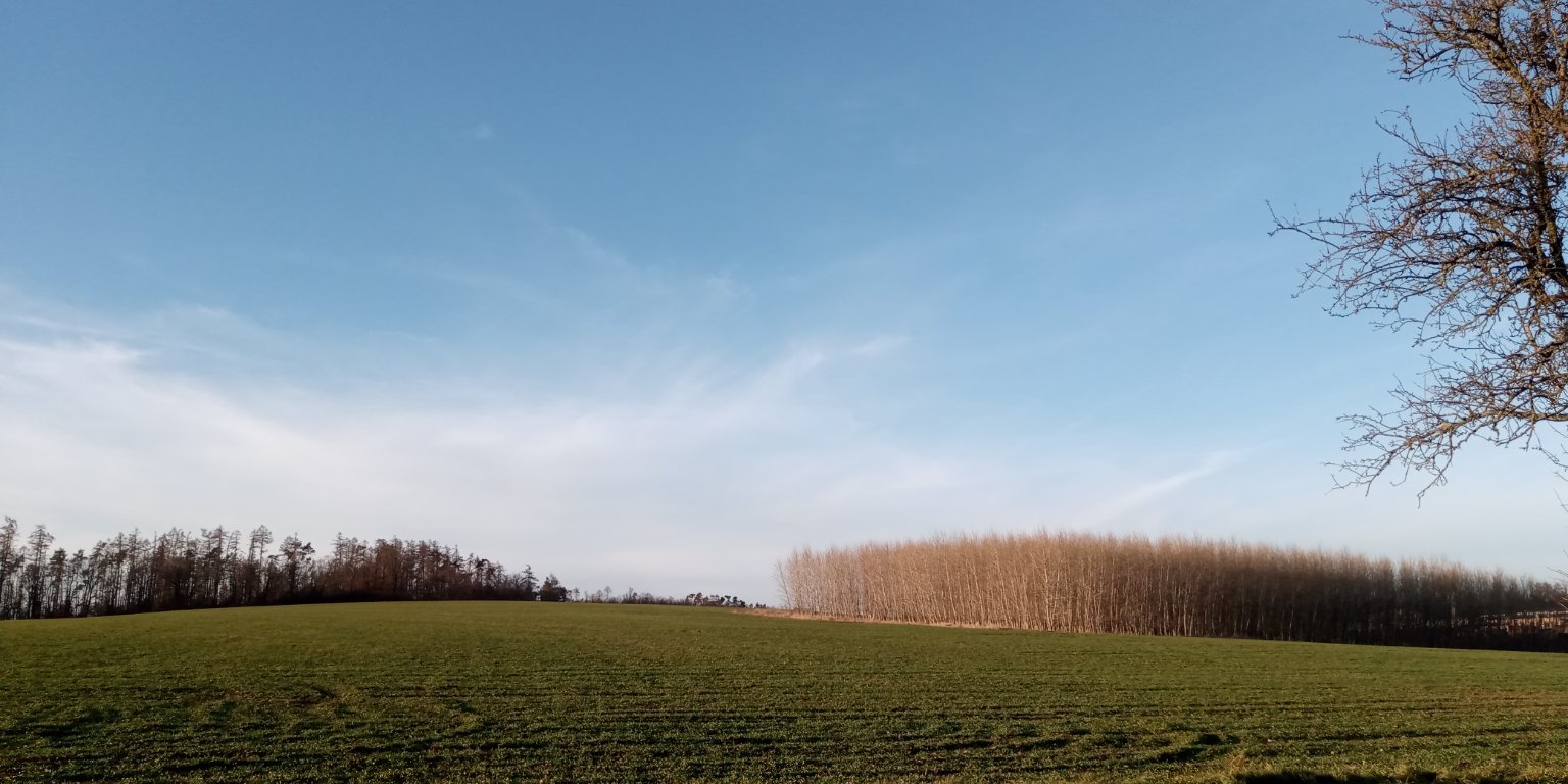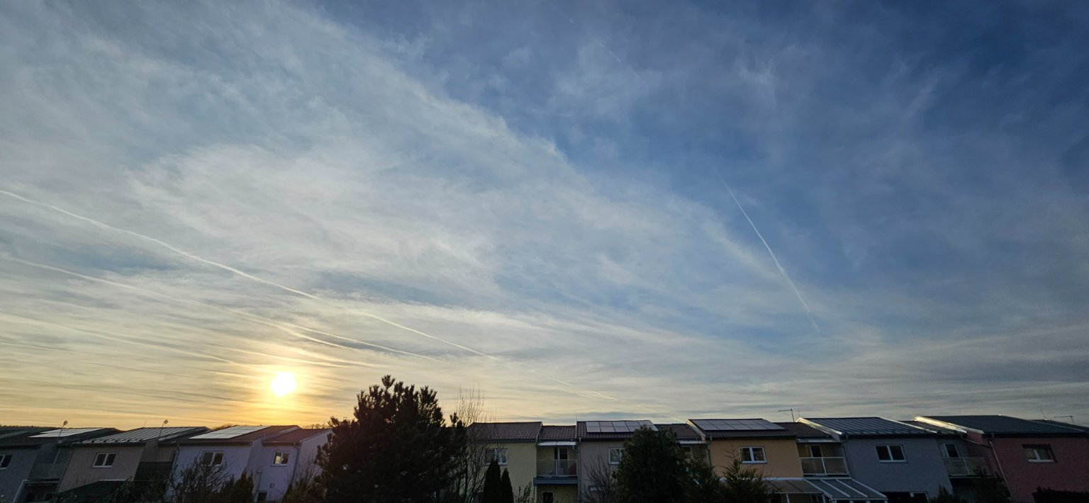 Hodně vysoké oblačnosti, patrné je slabé vedlejší slunce