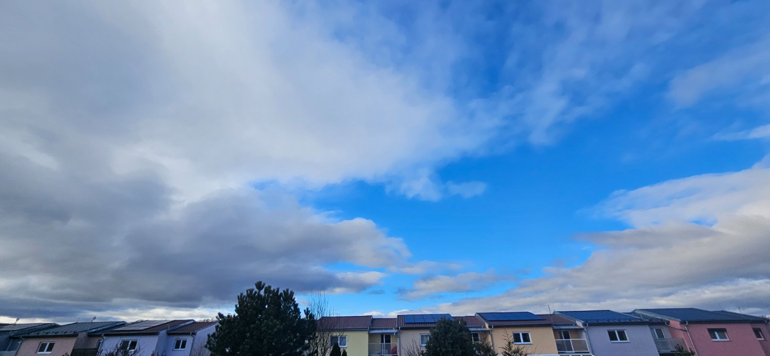 Polojasno až oblačno. Vítr okolo 2 m/s proměnlivý