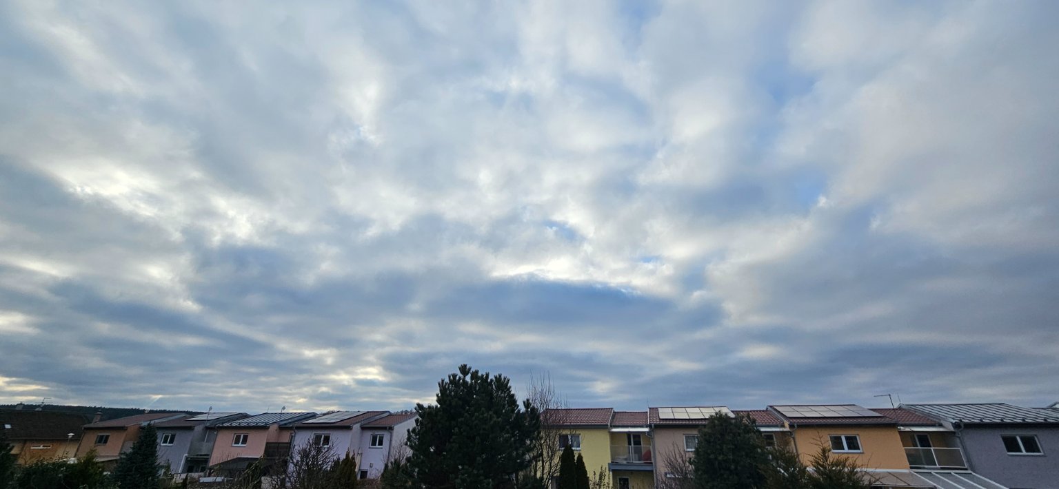 Skoro jasno. Vítr okolo 0,5 m/s proměnlivý