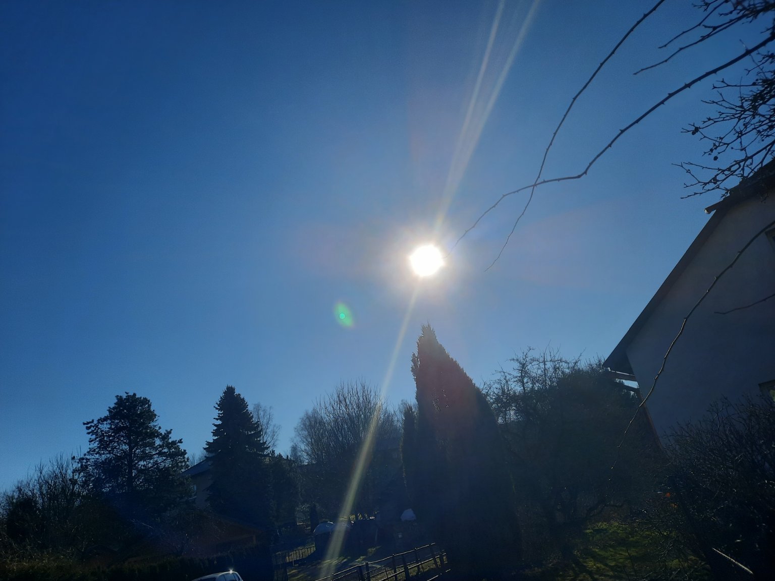 Nádherný slunečný den. V noci ovšem teplota klesla na -7,1°C, což je zatím nejsilnější mráz této zimy u nás. Je bezvětří, tlak: 1031hPa.