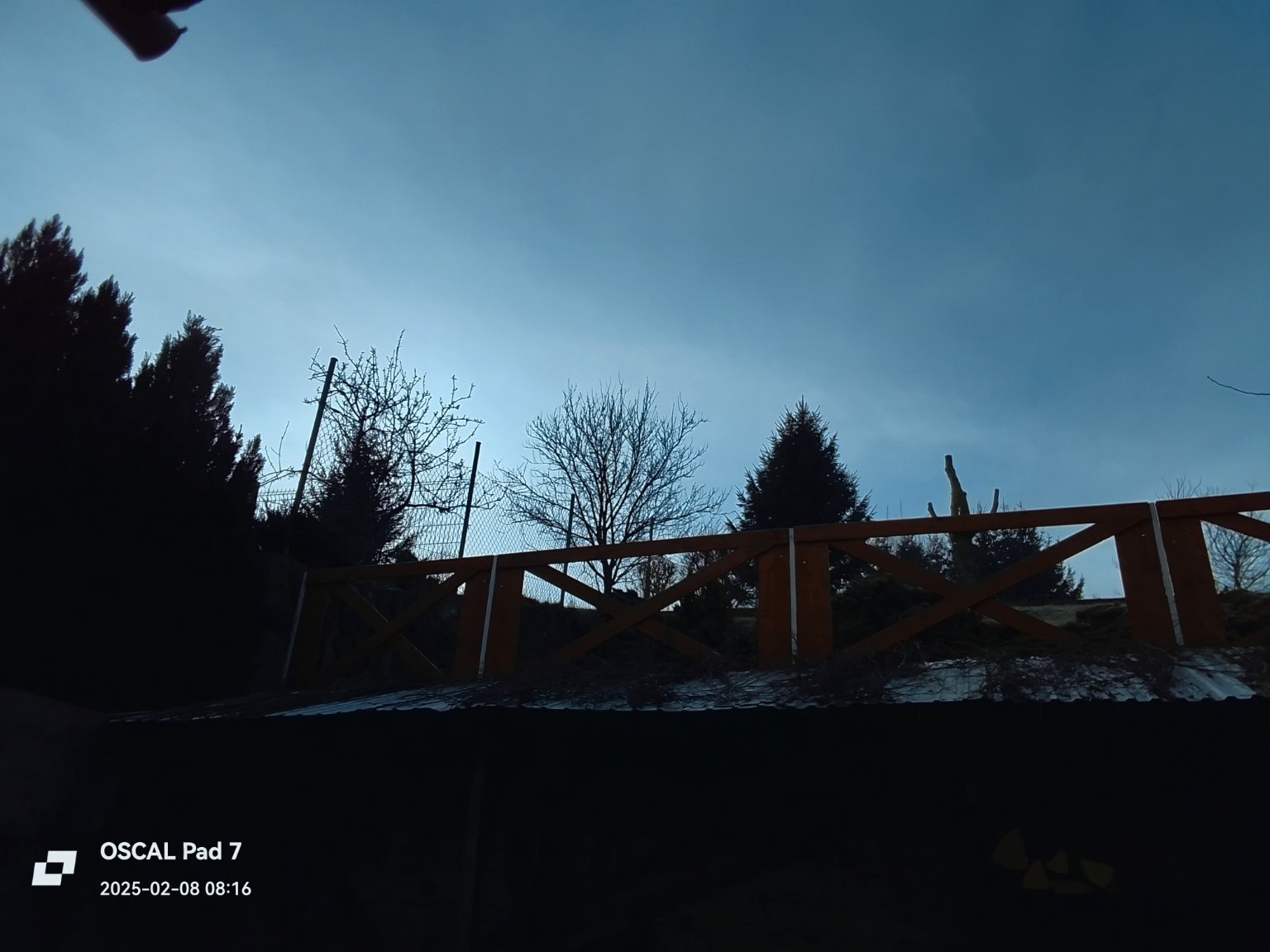 1,4°C, Zataženo až oblačno, Sníh: nesouvislý. Halový jev kolem Měsíce.
