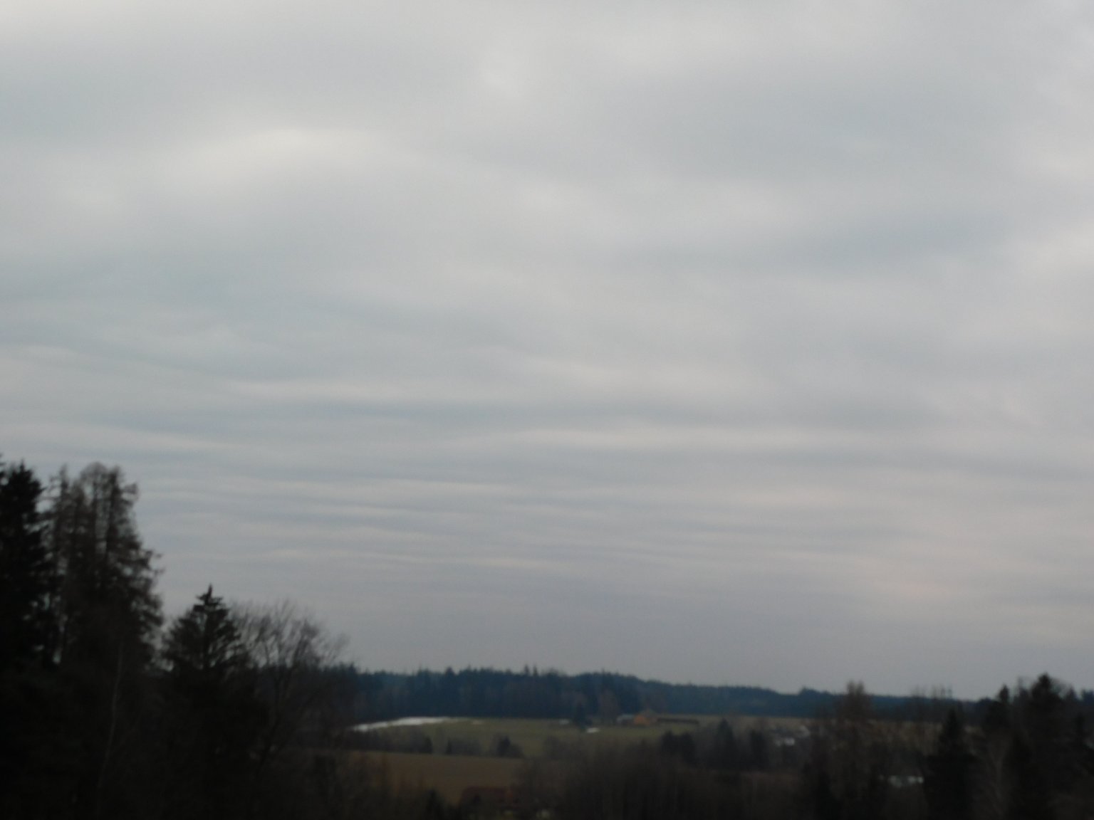 Zataženo. Vítr okolo 0,5 m/s SV. Min T dnes 1,8°C