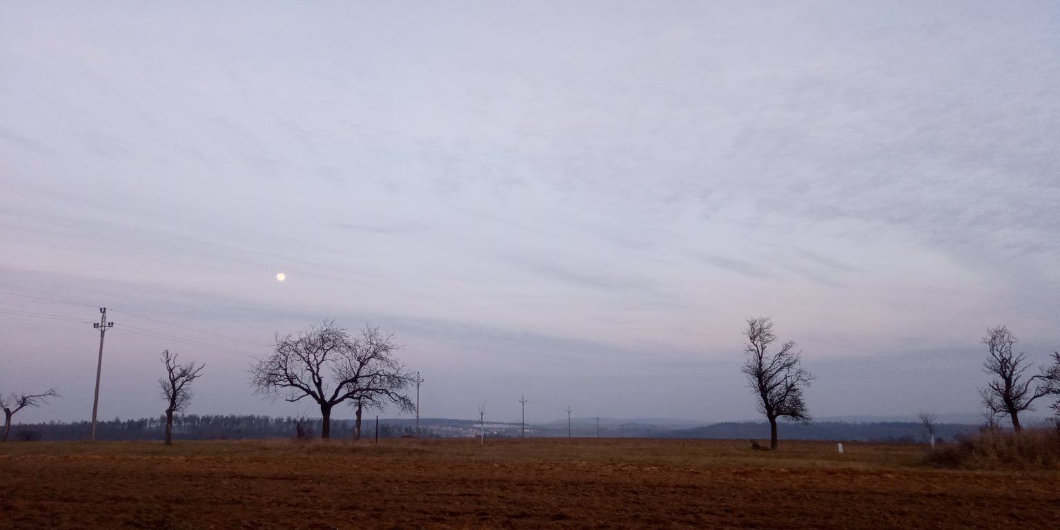 Polojasno až oblačno, vývoj oblačnosti. Vítr okolo 1 m/s SV