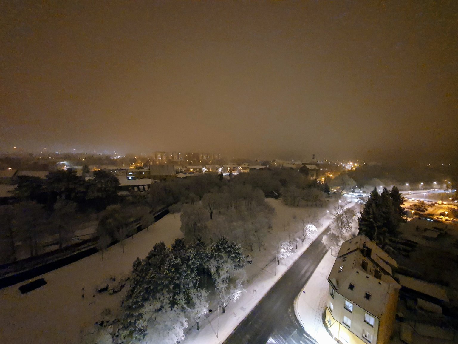 2025 02 12 v 18:06:22 sněží. sníh se drží na trávě -1°